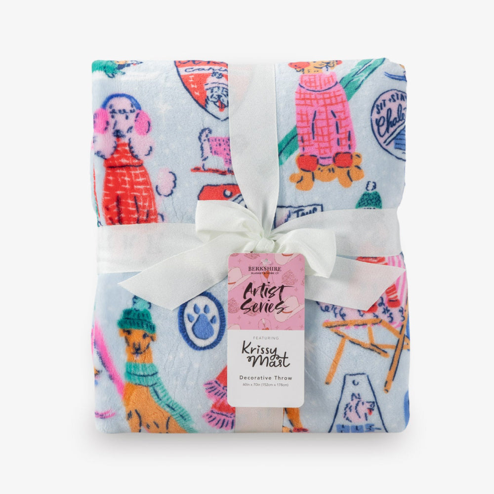 Holiday Printed VelvetLoft® Throw - Skiing Dogs