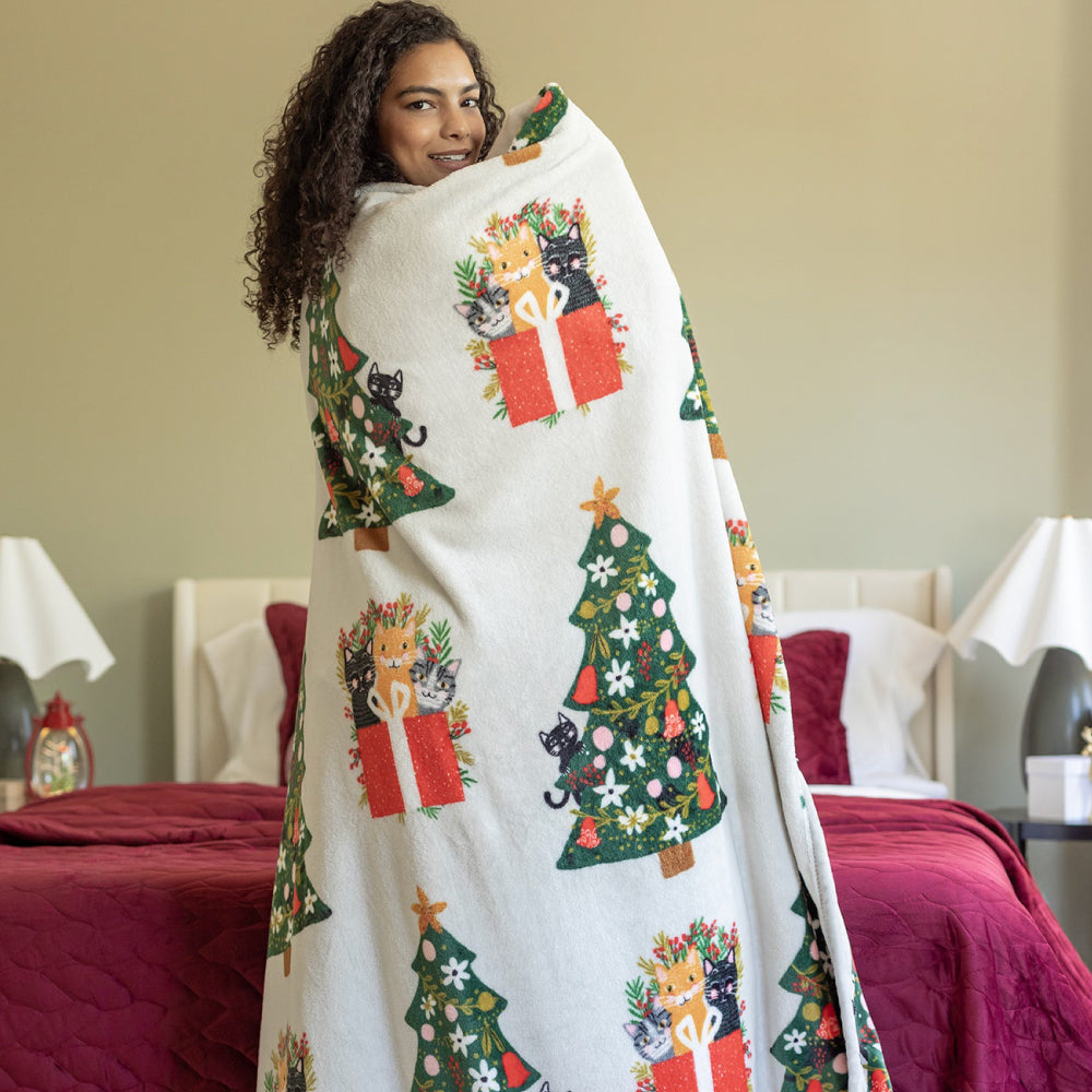 Holiday Printed VelvetLoft® Throw - Cat Holiday Tree