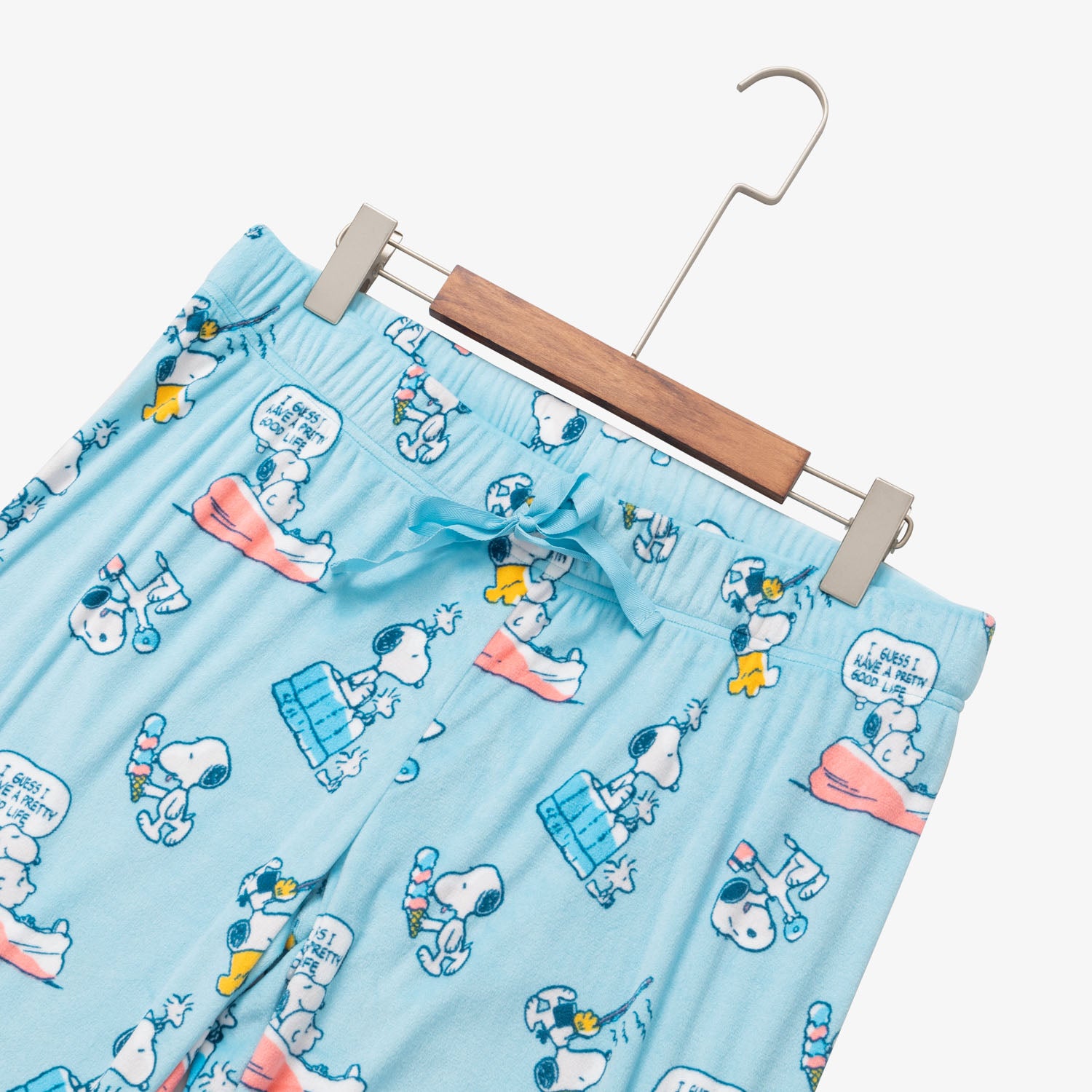 We're celebrating the Peanuts® 75th Anniversary in style! Kick back and relax with these fleece lounge pants featuring sweet and nostalgic Snoopy patterns. The lightweight and breathable fabrication is comfortable in every season, so you can take them from lounge to sleep no matter the temperature. An elastic waistband with tie closure offers a comfortable and flexible fit so any Snoopy fan can get cozy.